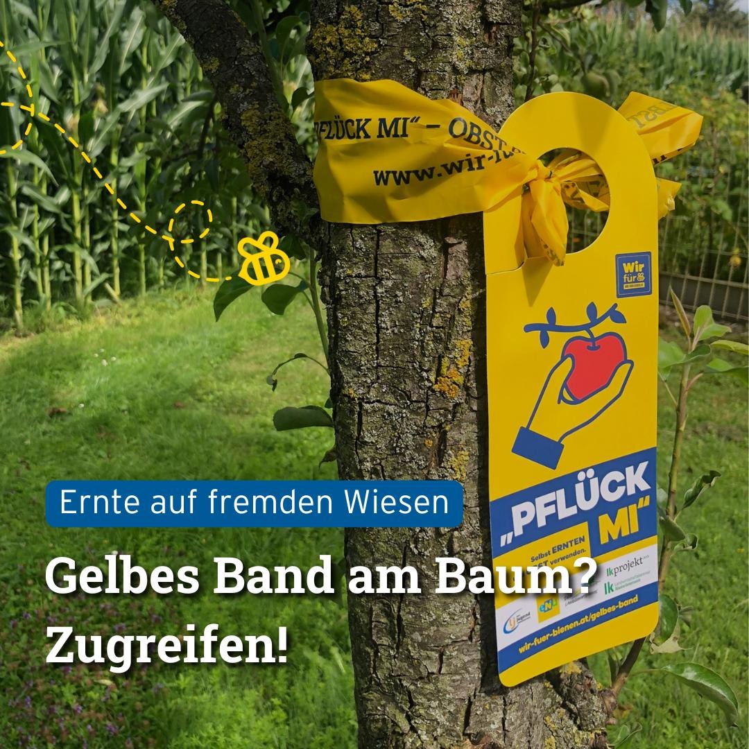 Überschüssiges Obst in der Gemeinde eine Chance geben: die Aktion „Pflück mi! – das gelbe Band“ macht’s möglich!